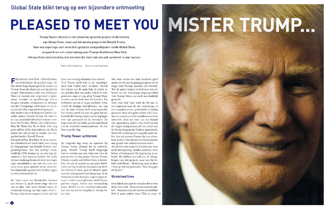 Interview met Donald Trump over Trump Towers Atlanta, een vastgoedproject in samenwerking met Global State Investments uit Weesp.
